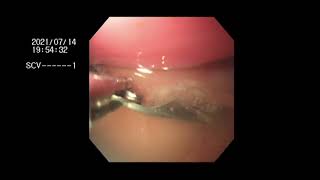 食事後、梨1かけらを飲み込んでしまい、その後から泡を吐いているとの事で来院されました。レントゲンで、食道内異物を疑い内視鏡検査を実施しました。