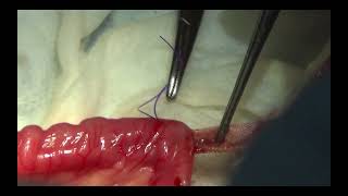 腸切開部を縫合し、腸内に生理食塩水を注入し縫合部から漏れがないかリークチェックを実施した。